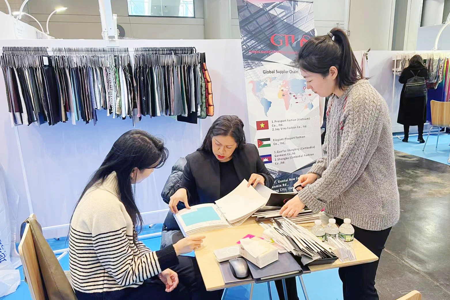 From January 21st to 23rd, GTHS dispatched more than 10 sales managers to participate in the Texworld & Apparel Sourcing NYC. The company set up a total of 9 booths and carefully prepared various functional fabrics, fancy fabrics, as well as loungewear for spring and summer. While interpreting the concept of environmental protection and sustainability, the exhibits reflected the diversity of fabric reconstruction. The company's independent design ability was demonstrated through a combination of 3D design and sample display.